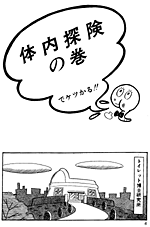 ところで、この話は遠藤周作氏の小説「初春夢の宝船」にピタリと符合するところがあります。どちらの作品も映画「ミクロの決死圏」をモチーフにしているのですが、最後の体外に出てくる方法が似ているのです。数年ほど遠藤氏が先に書いているようですが、とりいかずよし氏がこれにインスパイアされてトイレット博士に使ったのかは不明です。なお第1話は、シリーズの他の話とは設定も微妙に違うようで、もしかするとパイロット版的な役割を持って描かれたものかもしれません。